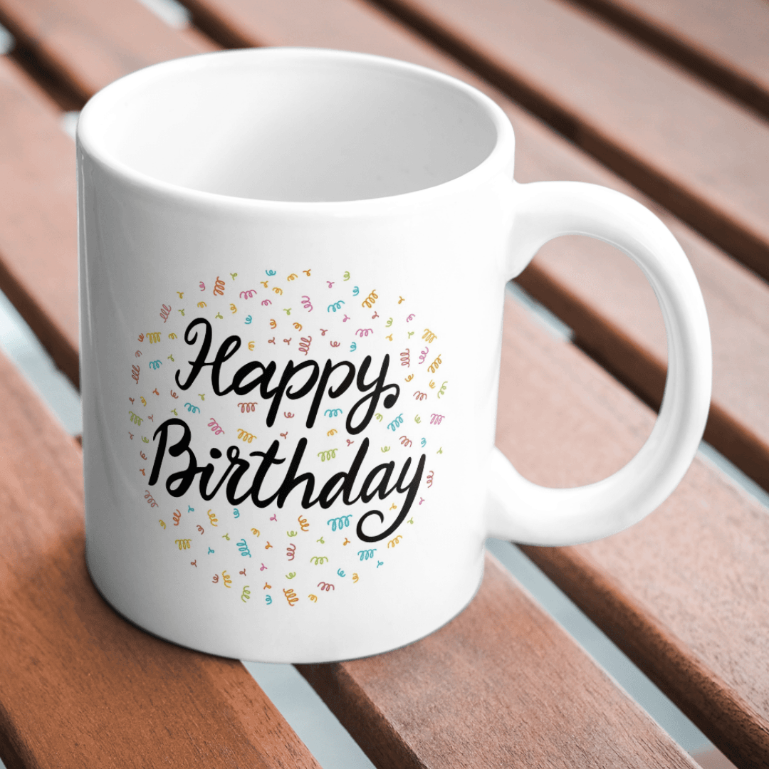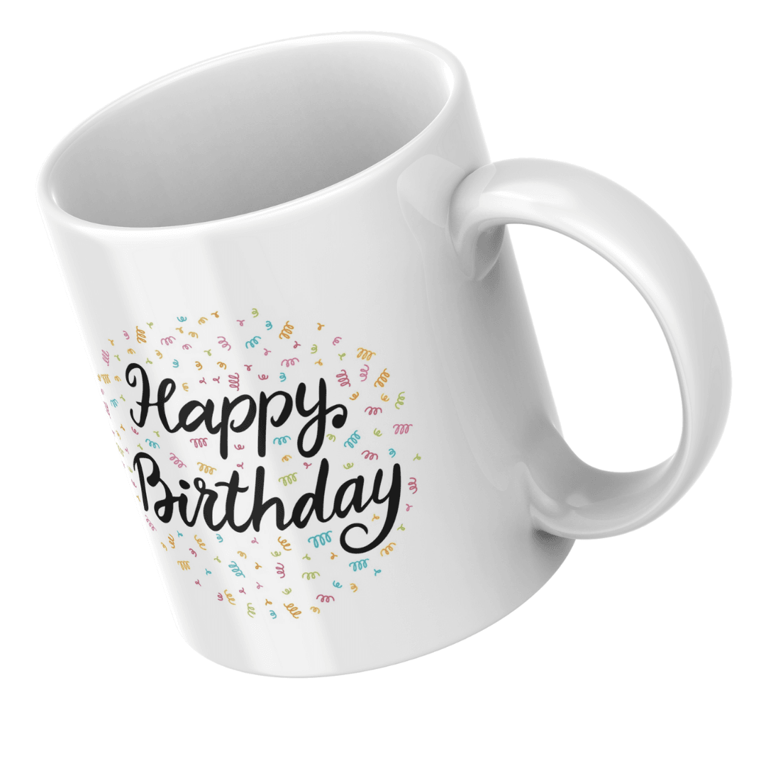 Happy Birthday Celebration With Gifts Cake And Cute Toys Mugs