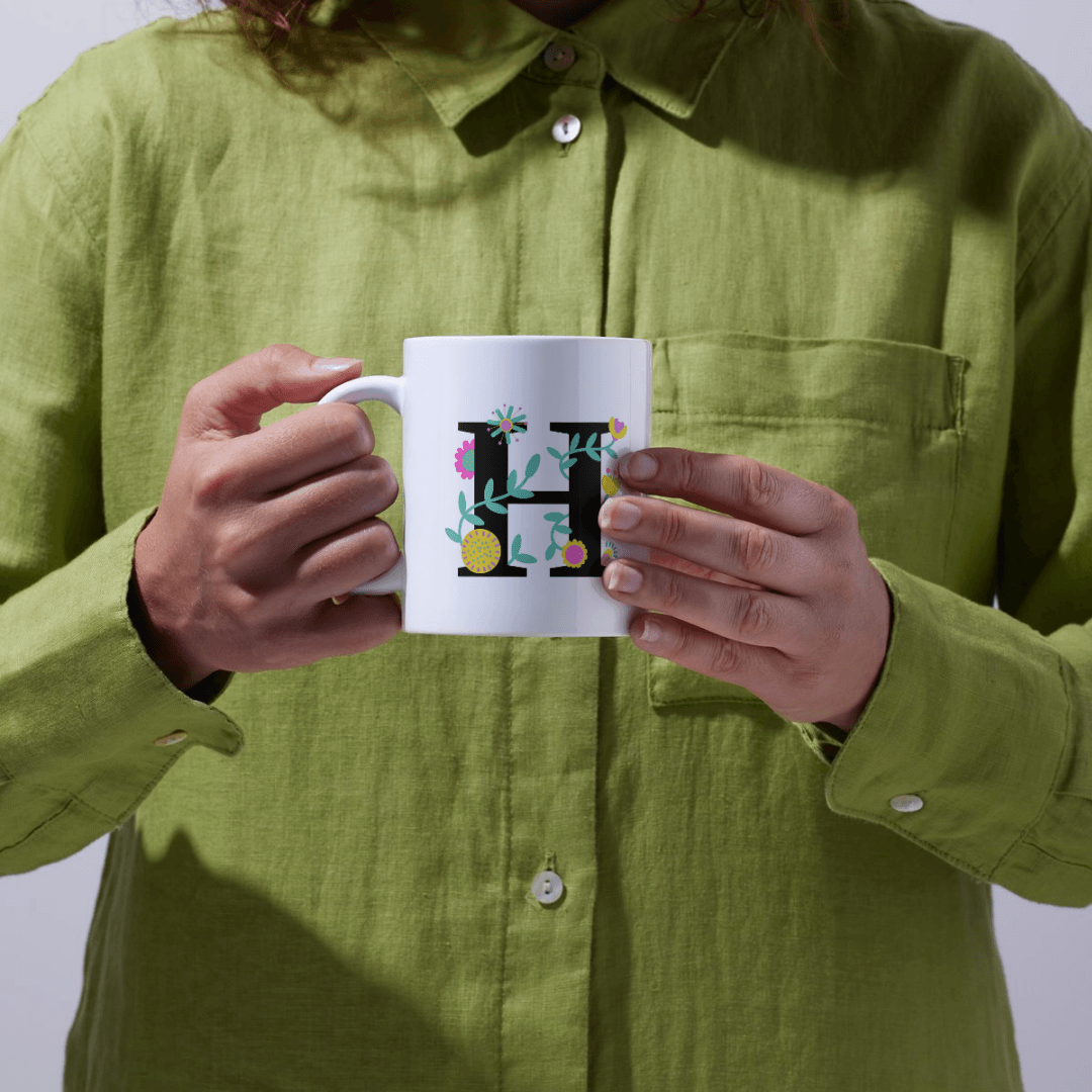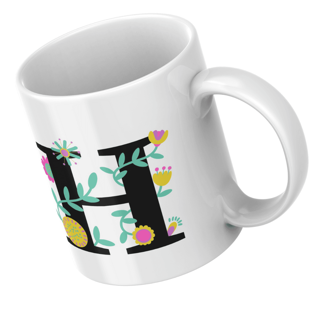 January 8, 2026Colorful Floral Vines Decorating a Bold Stylish Letter H Mug