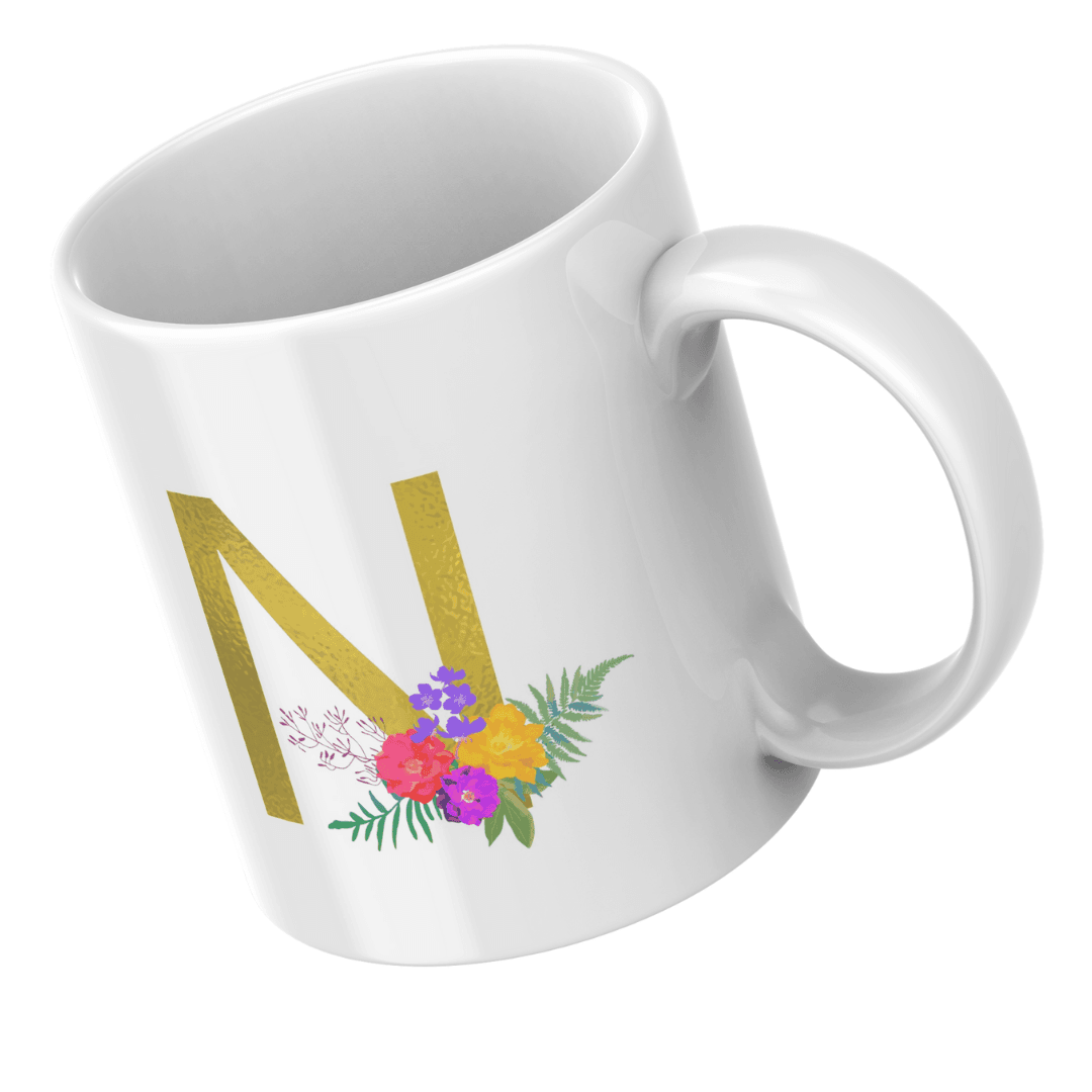 January 12, 2026Golden Letter N Decorated With Bright Colorful Floral Blooms Mug