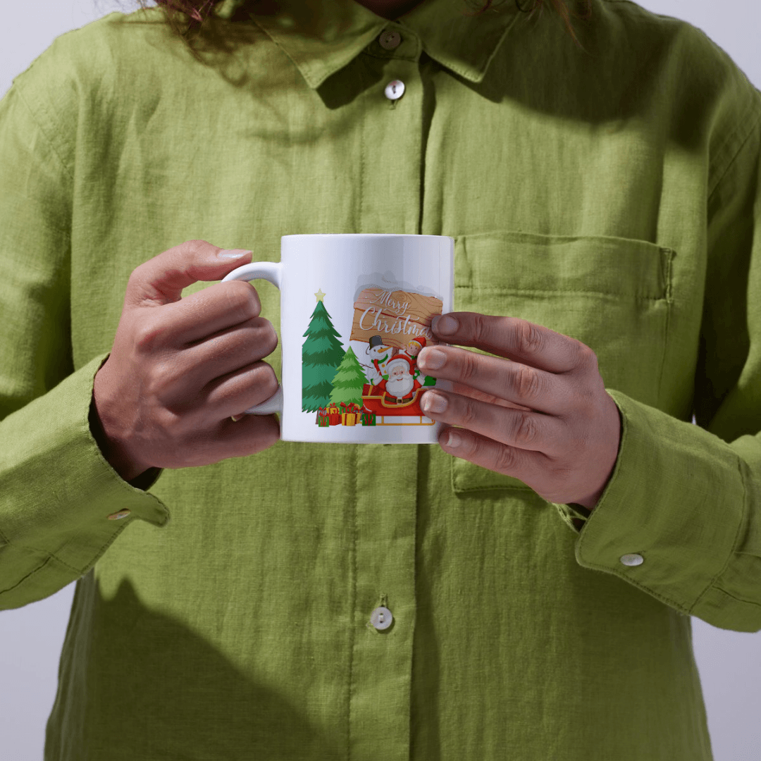 Bring the magic of Christmas right into your home with this adorable Santa sleigh decoration! Imagine Santa Claus himself, smiling as he rides his sleigh, full of presents. Beside him stand two festive Christmas trees and a cheerful snowman. This charming ceramic piece captures all the joy and wonder of the holiday season.