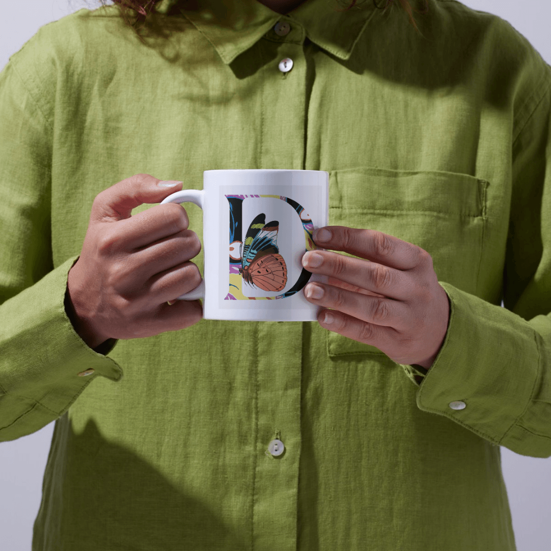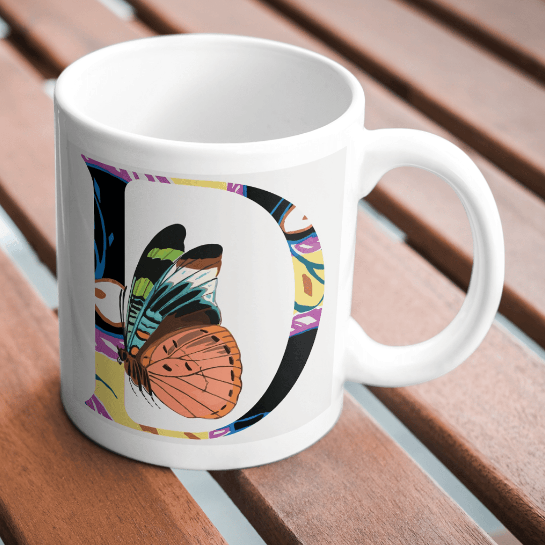 Imagine starting your day with a burst of color and a personal touch! This Vibrant Butterfly Artwork Mug is designed to bring joy to your everyday routine. It features stunning butterfly art with a beautiful blend of colors, making each sip feel special. The elegant letter ‘D’ is also beautifully integrated into the design, adding a unique and personalized flair that’s perfect for yourself or a loved one.