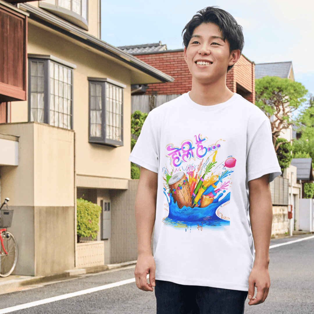 Get ready to dive into the vibrant spirit of Holi with this awesome t-shirt from Product GuruJi! Designed for boys, this colorful tee captures all the fun and energy of the festival. Imagine your boy running around, splashing colors, and laughing – this shirt will make him feel part of the celebration, bursting with joyful festive energy.