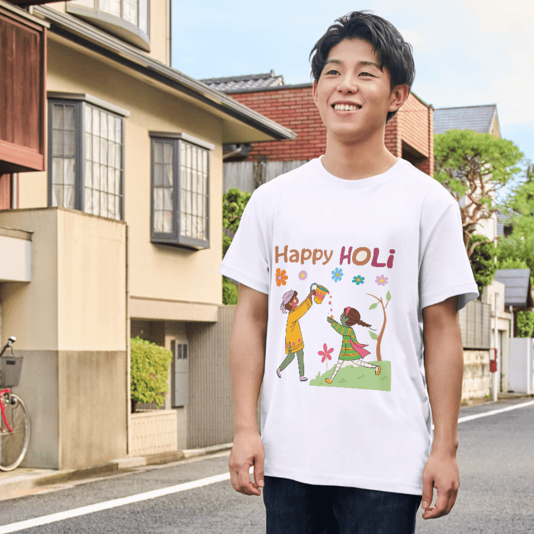 Product GuruJi helps your little one get ready to shine with joy and colors this Holi! Our “Kids Spreading Joy and Colors This Happy Holi Festival” T-shirt is specially designed for boys to make their celebration extra special.