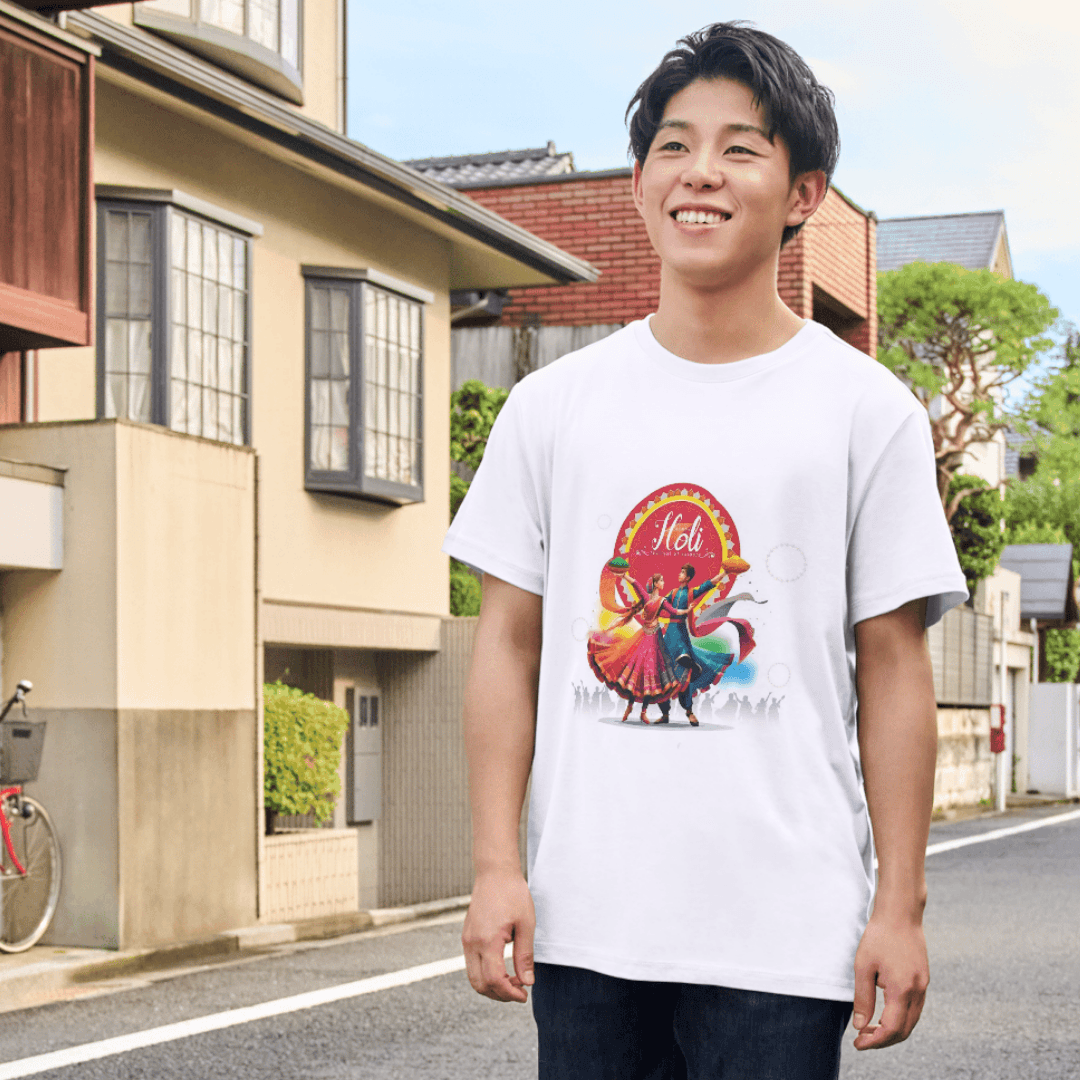 Get ready to celebrate with joy and color! This amazing T-shirt from Product GuruJi brings the vibrant spirit of Holi right to your boy’s wardrobe. Imagine traditional dancers, full of life, covered in beautiful, festive colors. That’s the lively scene printed on this special tee, making it more than just a shirt – it’s a celebration!